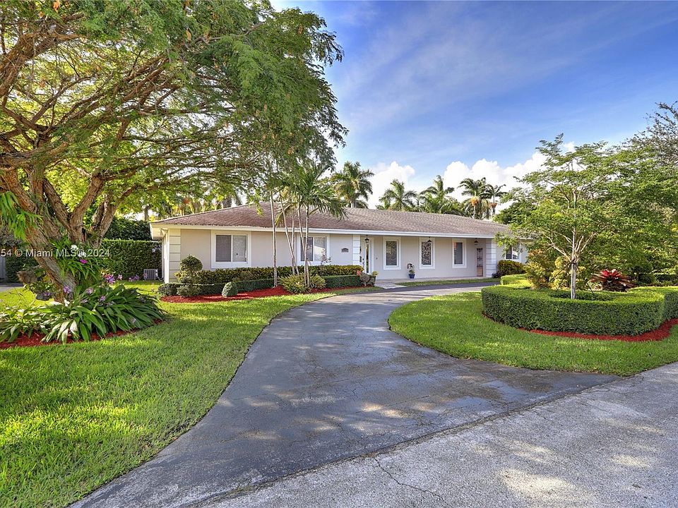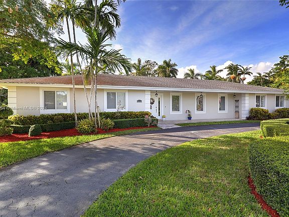 Wonderful, 3 bedroom, 2.5 bathroom home in the heart of Pinecrest, close to schools, restaurants, shopping, and more! The fantastic layout includes an open living room and dining room with views overlooking the covered patio and pool, nicely-renovated kitchen with breakfast room, plus family room/office. The primary suite includes two closets and a well-appointed bathroom with two sinks, two additional bedrooms share a large, updated bathroom. Outside find a summer kitchen on the deep porch, pool, basketball court, and beautiful green spaces.
