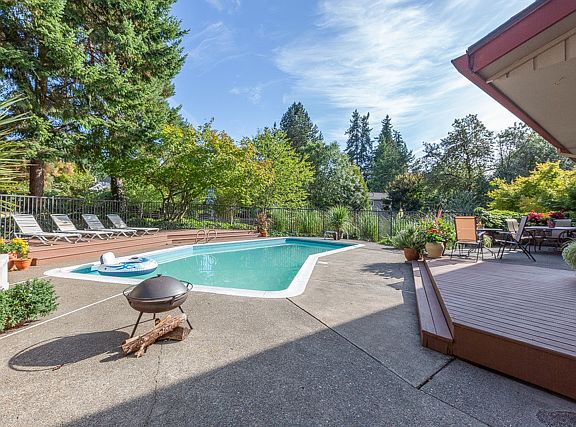 Rare traditional Tigard home, sitting on a beautiful private 1-acre lot with great potential to be divided into 3 additional lots (zoned 4.5). Large kitchen leads to a spacious yard & pool area perfectly set up for entertaining and social distancing. Build a 24x48 garage w/ ADU on top with an already poured slab. RV parking with hookup immediately available. The separate lower level entrance is perfect for multigenerational living/rental. Opportunities await in this great property!