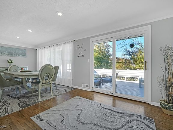 Welcome to this beautifully maintained ranch style home offering the perfect blend of comfort, elegance and modern upgrades. This stunning residence features 3 generously sized bedrooms, gleaming hardwood floors throughout, and a spacious living room ideal for relaxing or entertaining. The heart of the home is the formal dining room, which boasts elegant updates, and a sliding glass door that leads to a newer wood back porch. The half bath is completely remodeled. The kitchen has been tastefully updated, featuring modern laminate floors, stainless appliances, ample cabinetry with a functional layout. The lower level has been thoughtfully updated to include a spacious family room with a laminate floor, a carpeted versatile office that could also serve as a fourth bedroom, a stylish bar area and the laundry room. Outside, the backyard features a storage shed for yard tools, and a beautiful creek at the end of the yard, offering a peaceful natural backdrop. From the classic hardwood charm to the thoughtfully updated finishes, this ranch offers both timeless style and everyday convenience.
