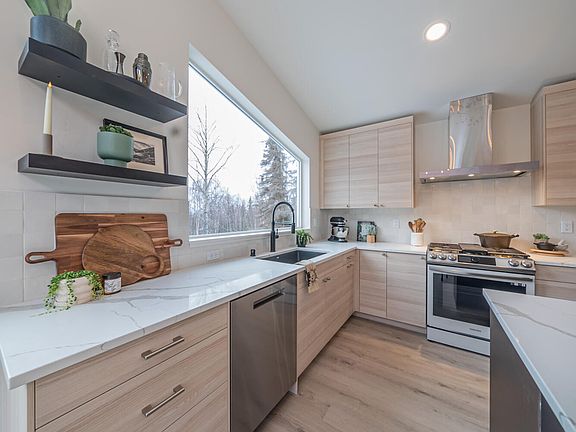 New Price! This contemporary new construction shop house is 2,436 sq. Ft. and features 4 beds, 3.5 baths, with a separate apartment, a 5 car garage shop, mid hillside with room for rv parking. The bright and open floor plan features a modern kitchen with quartz counters, LVP flooring and large windows.