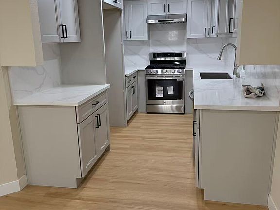 The home also comes with a small backyard that provides extra space for leisure. Recently renovated throughout, it boasts brand-new flooring, kitchen, bathrooms, lighting fixtures, fresh paint, and is move-in ready.
