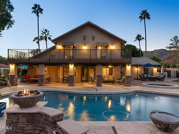 The crowning jewel of this masterpiece is the primary bedroom, located upstairs for ultimate privacy. Step into a retreat of tranquility where a walk-out deck beckons you to unwind. From this elevated vantage point, you can take in the sprawling backyard. A sparkling pool adorned with fire wok pots, invites you for a refreshing dip, while a hot tub promises relaxation under the starlit Arizona sky. An entertainer's delight where you will find an extended patio, multiple seating areas, an outdoor fireplace and BBQ grill, and finally a putting green! Behind the home you will find easy access to horse trail!