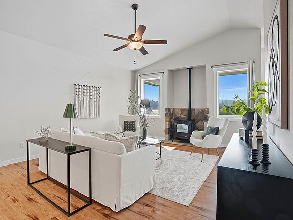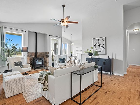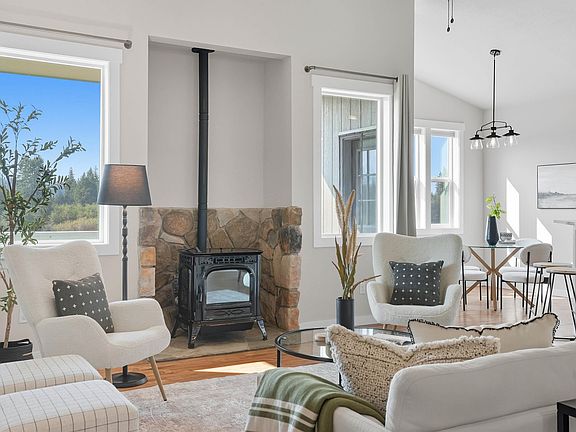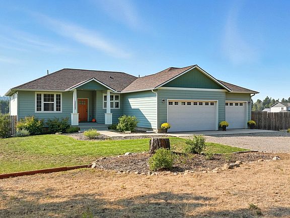 Step into this light-filled daylight rancher, tucked in a peaceful country setting just 10 minutes from HWY 2! Built in 2018, this 5 bd, 3 ba home offers over 3,000 sq. ft. The kitchen features granite counters, stainless steel appliances, & a spacious peninsula. The primary suite is complete with a soaking tub, tiled shower, walk-in closet, & convenient main floor laundry. The freshly finished basement (2024) adds 2 bedrooms, a full bath, and a large rec room. Enjoy 9 ft ceilings on the main floor, new carpet throughout (2024), a pellet stove for chilly days, and solar panels (2023) that keep power bills as low as $20–$35/month! Step outside to a covered deck with views of Mt. Spokane, a fenced backyard with garden beds, dog run, & fire pit. The property includes open alfalfa pasture, wooded acreage with a stream, paved road access, a 25+ GPM well, hard wired for generator, prewired for hot tub, & an oversized garage with extended 3rd bay. The perfect blend of efficiency, comfort, & country charm!