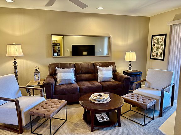 BEAUTIFULLY FURNISHED one bedroom condo. Available thru 12/31/25 at the $1500 rate, Jan-April $3500 (negotiable depending on length of stay). GATED community with 5 resort style pool and spa areas with waterfalls and rock formations Two gyms in the clubhouse as well as billiards, meeting rooms and media center. COVERED PARKING and ELEVATOR in the building. All appliances including private washer and dryer. Amazing location! Walk to the new PV, Dutch Bros Coffee, Stonecreek Golf Course, Target, Costco and dozens of upscale shops and restaurants. Water, electric, satellite tv and Wifi are INCLUDED.