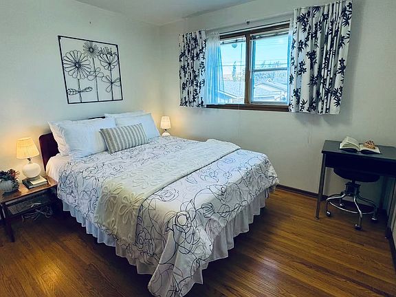 Main Floor: 3 furnished bedrooms, 1 full bathroom, bright living room, and a kitchen with updated appliances.