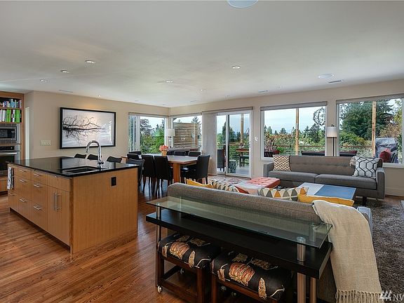 Stunning open floorplan remodel of mid-century gem w/expansive territorial, mountain, peek sound & sunset sky views! Top-notch finishes & details thruout. Kitchen w/rift-cut white oak cabs, quartz counters & stainless appl. Remodeled BAs, custom built-ins, hardwoods, new windows, 3 gas frpl & updated systems. West-facing full length covered deck w/hot tub overlooks incredible lush, zen-like gardens & pathways. Level entry & outdoor "lift" to bkyd/lower level. Gorgeous master wing. 2-car garage.