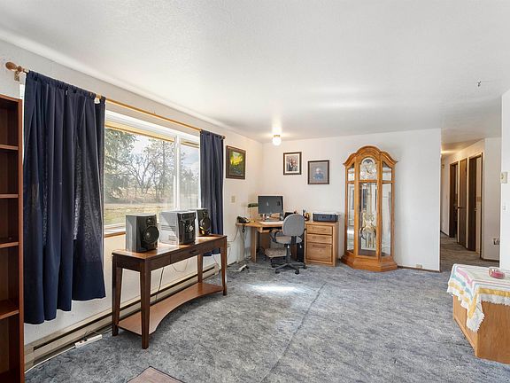 Great property for the price with some space to breath! 3 bedroom 1 bath 1 level home on 3/4 of an acre in Valleyford. Corner lot that is completely fenced with a 2 car shop and an additional 1 car detached garage. Vinyl siding, oversized covered deck off the kitchen slider, flat open lot with a sprinkler system. Large living room with separate office space and all appliances including washer, dryer, and refrigerator stay. Your chance to be in the country but minutes to town. Really cute home! This is an estate sale.