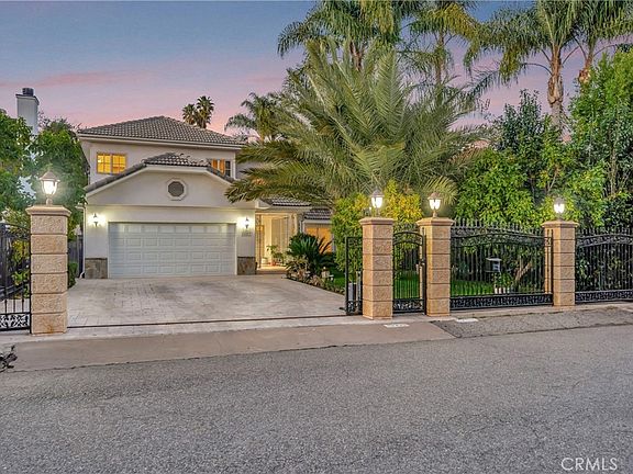 Welcome to your personal oasis located in the heart of Valley Village. This beauty is privately gated and surrounded by lush landscaping. Located on a desirable tree-lined street, this one has it all! Boasting soaring high ceilings and an inviting open floor plan, enjoy wood floors, recess lighting, fresh paint, a chef's kitchen complete with Sub-Zero and Thermador appliances, a large center island, stone countertops and a floor to ceiling Sub-Zero temp-controlled wine storage. This fantastic home features a grand entrance, impressive formal living room/dining room, built-in bar, cozy family room, main level bedroom +++ Upstairs find 4 additional spacious bedrooms. The primary suite is truly fit for a queen, boasting his and her walk-in closets, luxurious en-suite bath and balcony. Perfect for entertaining, the yard features a pool /spa, fruit trees, natural green grass, and a fabulous covered patio. You will also find a designated laundry room, tankless water heater, newer dual zoned HVAC system, centralized vacuum cleaning system, multiple fireplaces and so much more. Conveniently located within the COLFAX CHARTER Elementary school district and walking distance from places of Worship as well award winning private schools, this one is a true gem!