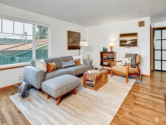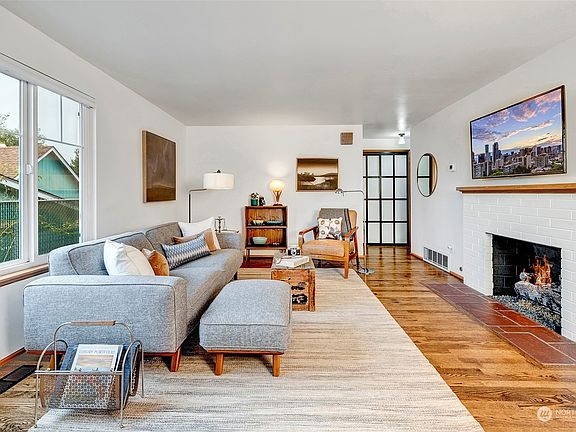This mid-century era home is one example of the many solid homes Lovell built throughout the greater Seattle area. Here the original footprint was expanded to add a spacious primary suite with ¾ bath, which could also double as a family room depending on the need. 4 bedrooms & 1.75 baths total. Upstairs has two bedrooms (1 with the Lovell knotty pine signature built-in bed & storage). Big kitchen w/ lots of cabinet & counter space. Tons of natural light, pristine oak hardwood floors, a gas fireplace & A/C! Private fully fenced lot with raised flower/vegetable beds, a large entertaining patio & 2 garden sheds. 1-car oversized garage. Updated & move-in ready all in a central location, close to Seattle & all the hip Burien shops & eateries.