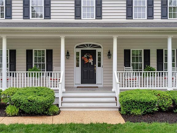This house...this porch is a place to see and to be seen. You do not want to miss this Transitional Home with a Full Porch (7'3"x33') that will quickly become one of the favored places for enjoying a quiet cup of coffee and for gathering with friends and family. Situated on a cul de sac lot on over 4.50 beautifully landscaped acres with mature hardwoods is a builder's personal home translating to - well built and superb detail throughout. As you enter the spacious foyer you are welcomed with warm Oak floors throughout the main floor and an Open Wood Staircase. The kitchen has been updated with new granite counters, new sink, and the house has been freshly painted throughout. Oh, and tucked away off the kitchen is an office/study. The large family room is perfect for gatherings with gas fireplace surrounded by built-in bookcases. On the second floor is the Master Suite with updates in the BR, large hall bath, storage, and a laundry area. Continue up to the 3rd floor to find a full bath, more storage, a multipurpose room and a 5th bedroom. So much space and comfort awaits the new owner at this meticulously maintained home. Ready for you to move right in and enjoy.