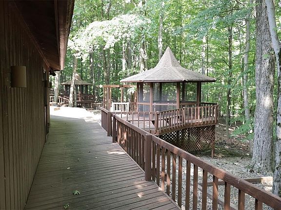 Truly a unique home and a Diamond in the Rough!!! Great room, kitchen and dining were opened up to create a huge living space! Great room looks out over 3436 Sq Ft deck and 2 gazebos. Back yard is totally wooded and private. Master bedroom was added on to create a 25x18 master bedroom along with a designated dressing area and 20x12 master bathroom. 4Th bedroom is now a laundry room which could also double as a craft room or office. Home will need some updates, TLC and your decorating. Other room is the dressing area with three sets of double closets.