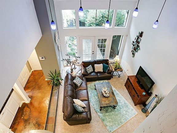 Great Garden style 3,2.1,2 home in fantastic location. Close to LBJ Frwy With easy access to major highways. The beautiful stained concrete is in most common areas downstairs. Dramatic Ceilings with 3 distinct outside enclosed patios and backyard access to HUGE common area park makes this home cozy and relaxing. Community pool with secluded area and trees all around.Many detailed upgrades throughout which you notice as you tour this property. Amazing Full Walk In Master Closet. Carpet in bedrooms AND a 2 car garage. New SS appliances and beautiful lofted fireplace, great for entertaining. Make this your new home today.