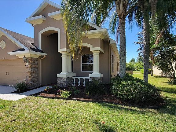 Seller Requesting Highest & Best Offers in by 6pm Sunday 3/27. POOL HOME ON WATER AND CONSERVATION! BRAND NEW FLOORING! NO CARPET! 2 AC Units, one replaced in 2020. Open floorplan, DOWNSTAIRS MASTER, 3-Bedroom, 3-Bath + Flex/Office downstairs, plus versatile loft overlooking huge family/dining room with 2-story vaulted ceilings. Spacious kitchen with breakfast nook. Master Bath has his and her vanities as well as Garden Tub and Separate Shower. Upstairs bedrooms share the loft and a Jack & Jill style bathroom with dual sinks and shower/tub. Fresh paint and new lighting fixtures throughout the majority of the home! Enjoy true Florida outdoor living in your huge, fully screened pool lanai (screens replaced 2021).Conveniently located near the Suncoast Expressway with easy access to local amenities and medical facilities. Make this Florida oasis home yours today!