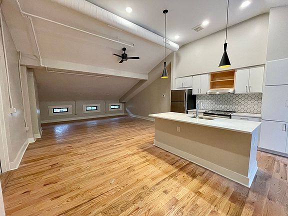 As you enter the unit you are greeted by the brand-new hardwood floors! Through the front-door on the left side is the large and open living space. On the right is the newly renovated kitchen featuring GE stainless-steel appliances, an oversized island, a large pantry cabinet, along with a breakfast nook. Through the hallway off the kitchen is the bedroom and bathroom. The bathroom includes patterned tile, a subway tiled tub, and a large vanity with a bowl sink. In the bedroom you have a fully exposed brick wall and a large walk-in closet with washer and dryer.