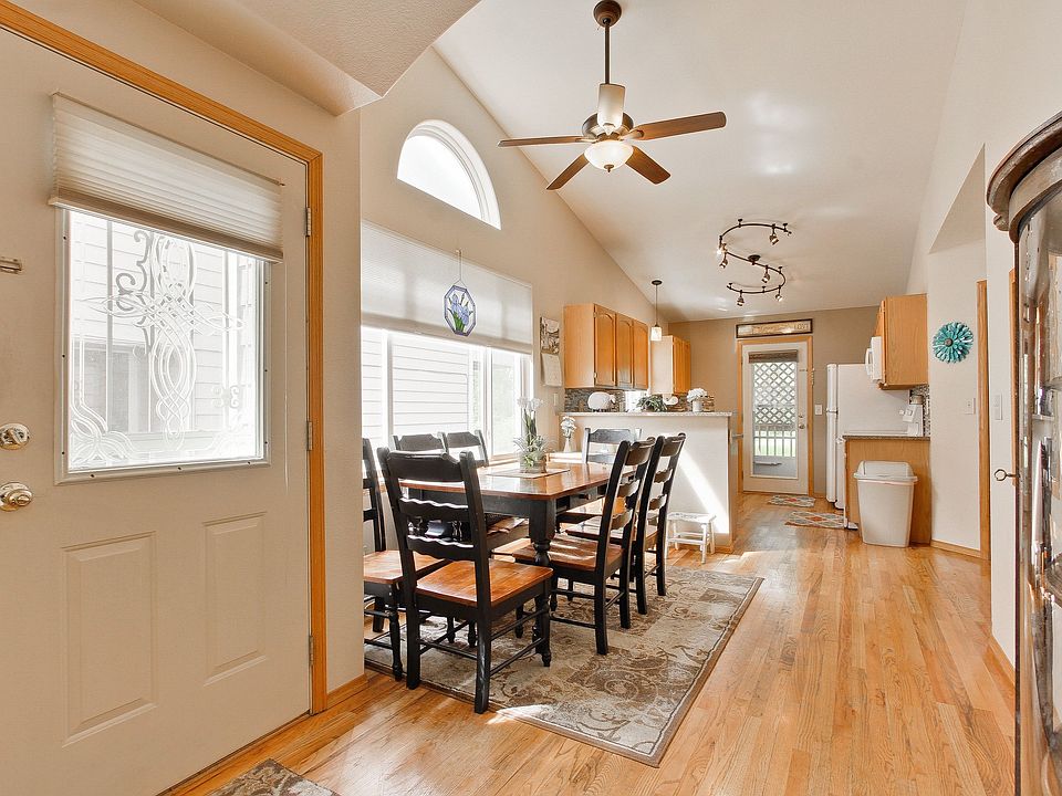 Beautifully updated townhome backing to The Meadows! Hardwood floors throughout the living area, brand new carpet and fresh paint make this home move-in ready! You'll enjoy main-floor living with the roomy master suite, tastefully finished kitchen and laundry with lots of storage. Upstairs are 2 large bedrooms and a full bath. The full -finished basement boasts a bonus living room, possible bedroom, crafts room and tons of storage! Wait until you see the view from the back porch!
