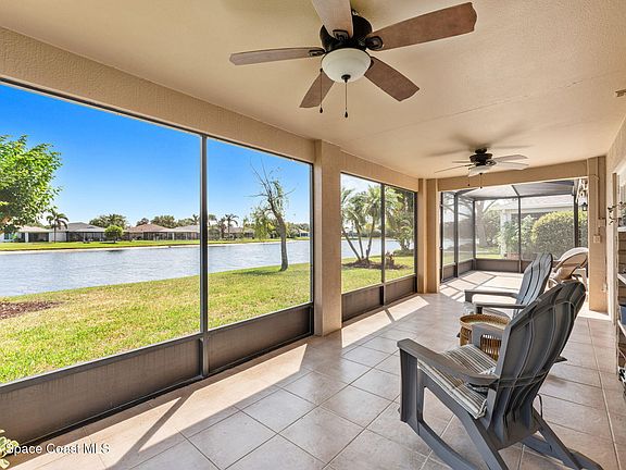 Tucked on a quiet lakefront lot in Auburn Lakes, this 3-bedroom, 2-bath concrete block home offers the kind of easy, open living that feels just right. With a thoughtful split floor plan, a screened rear porch, and serene water views, it has everything you're looking for. A 2019 roof, 2018 HVAC, and full storm shutter coverage add peace of mind, while the neutral interior, complete with tile and carpet flooring, offers a move-in-ready canvas. The open layout with higher ceilings flows from the living area to the kitchen, beaming with natural light. Just minutes from Viera East Golf Club, with reduced membership rates for Auburn Lakes residents, and steps from the community pool and clubhouse, this is a rare find in a well-kept, convenient Rockledge location. The home's exterior was painted in 2020, and a security system is already in place. Furniture is negotiable for those seeking a move-in-ready or second-home solution. Wake up to soft light on the lake, sip coffee from the screened porch, or take advantage of the nearby golf course, trails, and local dining. The HOA includes common area maintenance, clubhouse access, and neighborhood amenities, such as tennis courts, pickleball courts, beach volleyball, and basketball. With easy access to I-95, top schools, and Viera's town center, 1223 Brumpton Place offers relaxed Florida living in a setting that just feels good.