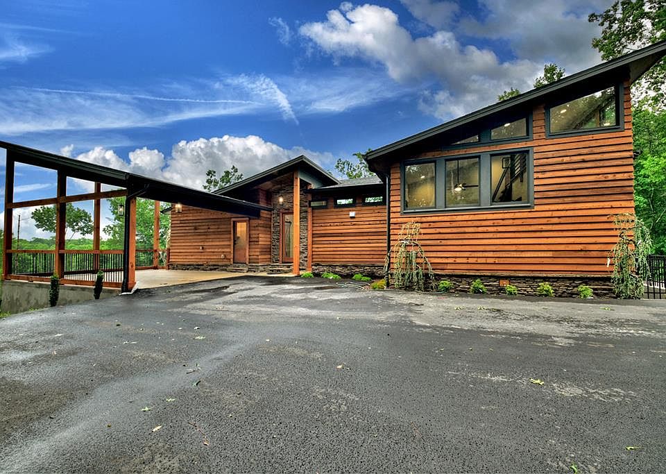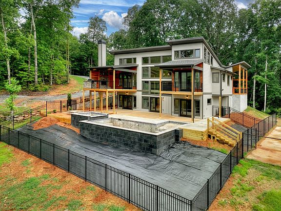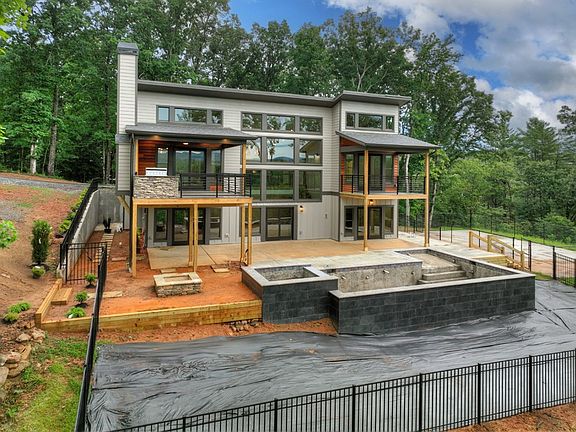 Under Construction Mountain Modern offers year round mountain views, 275' of creek frontage, Pickle Ball Court, & an exclusive Beach Entry Gunite pool! Situated harmoniously on 6.2 acres of seclusion, this contemporary 4-bed, 4.5-bath masterpiece embraces open spaces, abundant natural light, & clean design. The generous great room seamlessly connects to the dining area & modern kitchen, while expansive three-story windows frame awe-inspiring vistas. The primary suite features a private porch & a spa-like bathroom. A second guest ensuite on the main level, along w/ a 1/2 bath, covered party porch, & outdoor fireplace, completes the main floor. The open terrace level showcases a wet bar, game area, fireplace, & two additional bedrooms & full baths. Short-term rentals are allowed. Conveniently located just minutes away from vineyards, wineries, & downtown Ellijay, this unicorn property is under construction with an estimated completion time of July 2024. Please note that the photos provided are of a similar home and may not accurately represent the exact finishes or extras of this property.