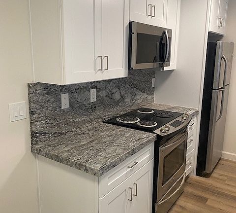 New laminate flooringRemodeled bathroomRecessed lightingGranite countersOn-site carport parking spaceNew kitchen cabinetsTiled stall shower