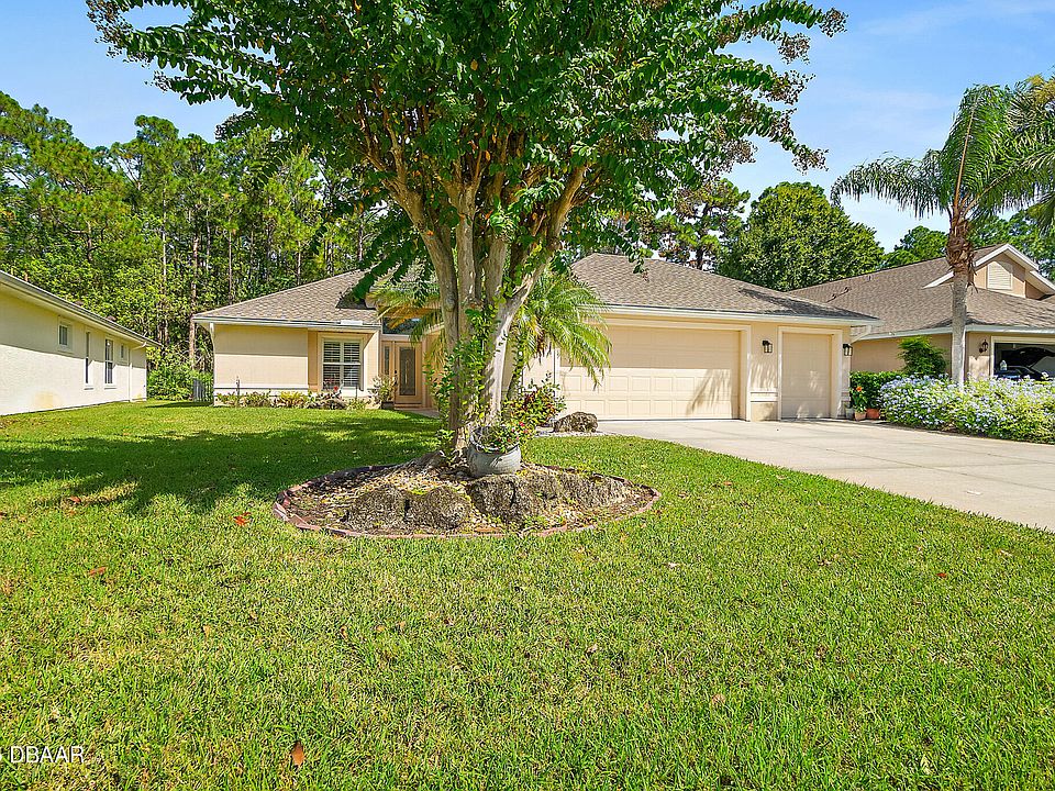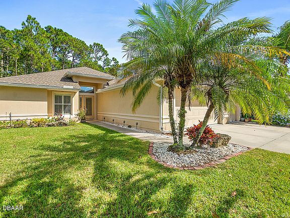 Located within the highly sought-after, guard-gated community of Plantation Bay, this exceptional residence offers a captivating blend of elegance, style, and comfort. This 3 bedroom, 2 bath, 3 car garage home perfectly encapsulates true, effortless Florida living. The interior showcases an appealing color palette and thoughtful finishes throughout. Volume ceilings and an expansive wall of windows flood the main living areas with abundant natural light, creating a bright, welcoming atmosphere. The spacious kitchen, complete with ample storage and a charming breakfast nook, flows seamlessly into a designated flex room or office, offering versatile space for your work or hobbies. The expansive owner's suite is a private retreat featuring a tray ceiling and attached en suite bathroom. Here, you'll find a dual-sink vanity, a step-in glass shower, and a spacious walk-in closet. Two additional bedrooms and a full bath provide ideal comfort and privacy for family or guests. Step outside to - unwind in the screened lanai that backs to a private preserve. For ultimate peace of mind, the roof was replaced in 2022, ensuring a maintenance-free start to your new lifestyle. Discover your piece of paradise in Plantation Bay, one of Florida's premier private, guard-gated communities. Plantation Bay is a distinguished, golf cart friendly community and is known as one of the best private golf communities in Florida, with 45 holes of Championship golf and immaculate conditions from tee-to-green. Conveniently located to area beaches, shops, restaurants, and parks and offers multiple clubhouses, fitness center, lighted tennis and pickle ball courts, stunning resort style pool and cabana bar and a brand-new state of the art 30-million-dollar club house. Memberships are optional. Enjoy living the Florida lifestyle in one of the best neighborhoods around!