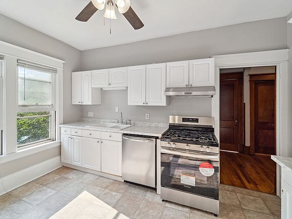 This upper-level duplex is located on a quiet corner lot in a nice Saint Paul neighborhood. It has a front porch that's great for relaxing and a back deck and patio where you can spend time outside or have a barbecue. The home has a lot of natural light, with bright hardwood floors, and original built-in cabinets that give it some classic charm. Crown molding adds a nice touch to the space, and ceiling fans help keep things comfortable.
