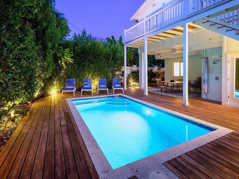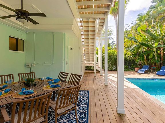 Discover your own private oasis in the heart of Key West! This spacious 4BR/3BA two-story home offers over 2,200 sq ft of living space designed for both relaxation and entertaining. Located in desirable Midtown, just minutes from the Casa Marina, Higgs Beach, and White Street Pier, you'll enjoy the perfect balance of island living and everyday convenience.Step inside to find an open floor plan with multiple living and dining areas, a modern kitchen with stainless steel appliances and wine cooler, and flexible spaces ideal for guests or family. The home's layout includes two bedrooms on each level, providing privacy and options for hosting or working from home.Outside, the resort-style backyard is the true highlight: a heated pool with expansive deck, surrounded by lush tropical landscaping and tall privacy fencing. Enjoy the covered lanai for dining al fresco, rinse off in the outdoor shower after a day at the beach, or simply unwind in the shade of palm trees. This fully fenced property is perfect for both peaceful relaxation and lively gatherings.Additional features include off-street parking for 2-3 vehicles, central air, laundry room, ceiling fans, and negotiable furnishings. With a 30-day minimum rental allowance, this property also offers excellent potential as a vacation rental or investment. Whether you're seeking a year-round residence, second home, or income-producing property, 1223 Flagler Avenue delivers the best of Key West living with comfort, charm, and convenience.