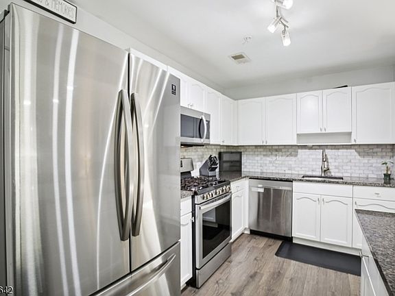 Meticulous, move-in ready end unit condo featuring luxury vinyl flooring throughout main living areas. Open-concept living room, dining room and kitchen anchored around center island with built-in beverage refrigerator, granite countertops perfect for entertaining. Desirable split floor plan, offering a spacious primary suite, en-suite bath, WIC and a separate guest bedroom and full bath for privacy. . The laundry room includes includes washer/dryer with ample storage and an outdoor covered patio with an additional storage closet, This condo blends comfort, function, and modern finishes all in one! Easy access to RTES 22, 287,78 and NJ Transit.