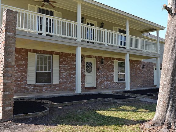 Beauty on large corner lot with huge front porch and balcony. Tile and carpet flooring. Granite counters in kitchen. Huge game room up with large built-in bar. Two staircases, fireplace. Backyard has a French Quarter feel with brick pavers and fountain. Game room could be converted into a bedroom suite as it has a full bath and can be accessed from separate staircase.