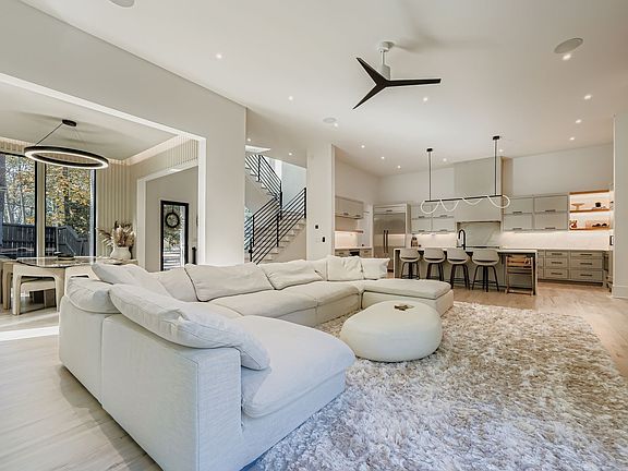 The home features a sleek, open-concept layout anchored by a state-of-the-art kitchen outfitted with high-end appliances, custom cabinetry, and elegant quartz countertops. Downstairs, a spacious finished basement offers flexible space ideal for a private home office, fitness room, or creative studio. A dedicated home theater area provides the perfect setting for cinematic nights in.