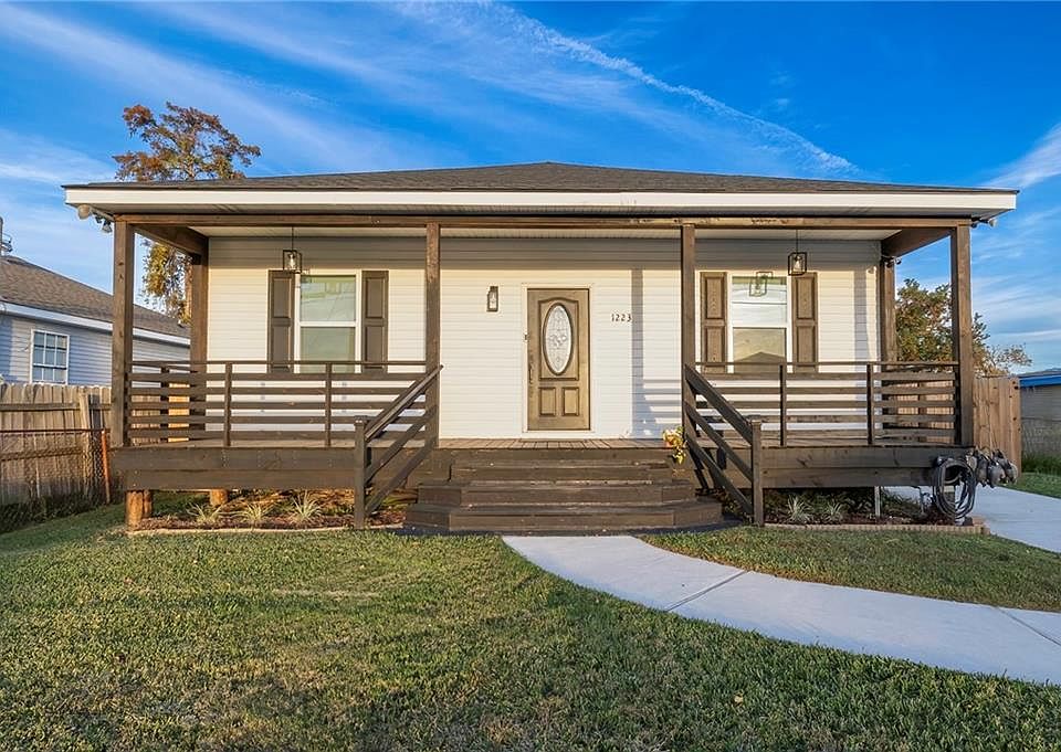 The bathrooms are finished with high end materials and modern fixtures, including dual vanities and stylish tile work, creating a spa like atmosphere. The spacious laundry room, custom storage solutions, and ceiling fans throughout the home add to its livability. Outside, both front and back porches offer inviting spaces to relax and entertain, and the fenced backyard is ready for gatherings, play, or pets. Located in a preferred flood zone, this property balances sophistication with functionality, making it an excellent choice for those seeking a move in ready home with true attention to detail.