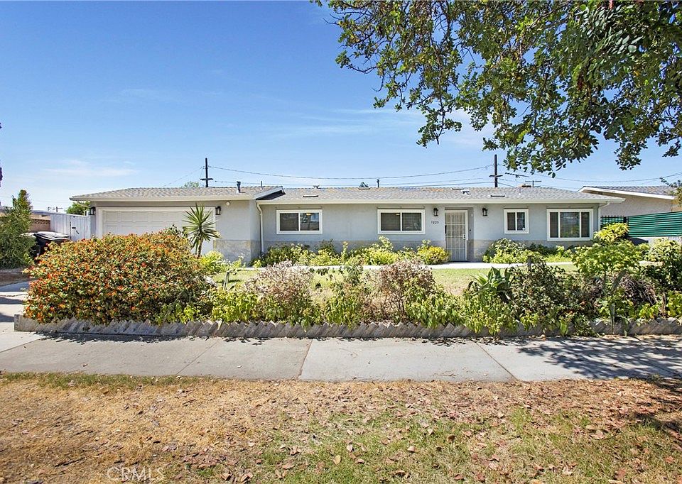 This beautifully remodeled 4-bedroom, 2-bathroom single-family home offers privacy, space, and modern living with the unique option of both residential and commercial use. The versatile floor plan features three distinct living areas, ideal for multigenerational living, a home-based business, or rental income. The brand-new kitchen shines with quartz countertops, custom cabinetry, stainless steel appliances, and a stylish backsplash. An open-concept design is enhanced with waterproof hybrid resilient luxury vinyl plank flooring, an upgraded fireplace with hidden LED lighting, and fresh interior and exterior paint. All rooms are equipped with ceiling fans for comfort and energy efficiency, and the laundry area is conveniently located in the garage. The backyard is built for entertaining, showcasing a resurfaced pool, covered patio, mature citrus trees, and full block wall fencing for privacy. Situated on a 7,215 sq. ft. lot, the home provides approximately 1,418 sq. ft. of thoughtfully designed living space. Additional highlights include dual-pane windows, aluminum tile roofing, and a two-car garage with dual side-opening doors—offering extended space for parking, a boat, or a trailer. Conveniently located near shopping, dining, and major freeways, this move-in-ready property seamlessly blends residential charm with commercial versatility, presenting a rare opportunity to live, work, and invest all in one.