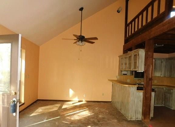 GREAT COUNTRY LIKE LIVING IN THIS 1.5 STORY HOME. FEATURES OPEN LIVING/DINING AREA, LARGE UTILITY ROOM, 1 BATHROOM AND 1 BEDROOM OFF KITCHEN ON BOTTOM FLOOR. UP THE SPIRAL STAIRCASE IS A LOFT AREA WITH CLOSET, FULL BATHROOM AND BEDROOM WITH ACCESS TO A BALCONY. HAS 2 CAR ATTACHED GARAGE AND STORAGE SHED. HAS POTENTIAL! HUD ACQUIRED PROPERTY SUBJECT TO HUD REGULATIONS & BIDDING PROCEDURES. OFFERED "AS-IS" ONLY! BUYERS TO VERIFY ALL INFO! FOR UTILITY TURN ONS, APPROVAL MUST BE GRANTED IN ADVANCE FROM HUD'S FIELD SERVICE MANAGER. IN CASES WHERE PLUMBING DEFICIENCIES EXIST, APPROVAL FOR WATER TURN-ON MAY BE DENIED. $100 DOWN PAYMENT INCENTIVE FOR OWNER OCCUPANTS ONLY WITH FHA LOAN (203K REHAB INCLUDED)*SEE ATTACHMENT