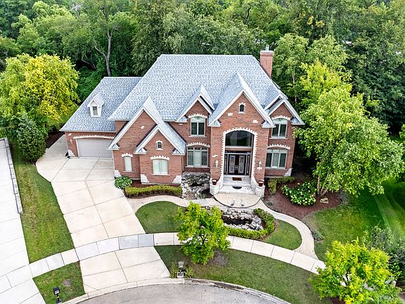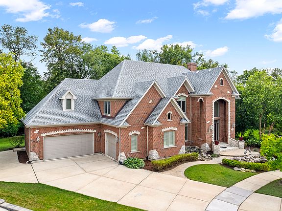 Nestled in the highly sought-after Hobson Pond subdivision, this exquisite 6-bedroom, 5.5-bathroom executive home offers an impressive 5,166 square feet of luxurious living space on a sprawling 16,000 square foot private cul-de-sac lot. The all brick exterior and custom architectural decor are complemented by the fantastic wooded lot, custom designed front yard pond, and tranquil backyard creek. Walking inside the beautiful French entry door, you'll be welcomed with a luxurious 2 story foyer that sets the standard for the rest of the home. The expansive first floor has an open concept layout with gleaming cherry colored hardwood floors along with soaring 10 foot ceilings. The heart of the home is the gourmet chef's kitchen featuring granite countertops, eat-in bar, custom cabinetry, a butler prep station, and a high end Viking Appliance suite; it is also centrally located with direct access to sunroom, dining room, breakfast nook, and family room making it perfect for entertaining family and guests. The first floor office, complete with walk-in closet and full bath, can easily serve as a sixth bedroom offering a flexible first floor living arrangement. The second level has a convenient laundry room and boasts 5 spacious bedrooms, each with vaulted ceilings, a walk-in closet, and access to a full bath. Now step outside to the expansive wrap-around composite deck perfect for outdoor gatherings or envision your custom dream space in the massive 2500 sq foot English basement which boasts high ceilings and a bathroom rough in; it's just waiting for your finishing touches. Enjoy a true 3.5 car garage; not only do you have space for 3 full size vehicles, you also have additional space perfect for additional storage or a shop. Don't forget the coveted Naperville district 203 school district that attends the highly desired Highlands elementary & Kennedy Middle school. This beloved subdivision is walkable to downtown Naperville and close to everything including shops, restaurants, Dupage river, riverwalk, and much more! Come see it today!