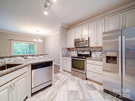 Elegant Townhome in Prime Pineville Location. You will love this beautifully renovated 2-bedroom townhouse in Pineville. Enter through a beautifully updated drop zone into the stunning kitchen featuring granite countertops, stainless steel appliances, and stylish LVP flooring. The open concept design creates a perfect entertainment space with gas fireplace and dining area that opens to a private wooded patio. Upstairs, a convenient split-bedroom layout offers privacy with both bedrooms featuring walk-in closets and en-suite bathrooms. The primary suite impresses with vaulted ceilings. Enjoy fresh paint throughout and new carpet upstairs. HOA amenities include water/sewer, trash/recycling, lawn maintenance, pool/hot tub access, and common area upkeep. Located just minutes from Carolina Place Mall with abundant shopping, dining, and entertainment options nearby—the perfect blend of comfort and convenience in a desirable location.