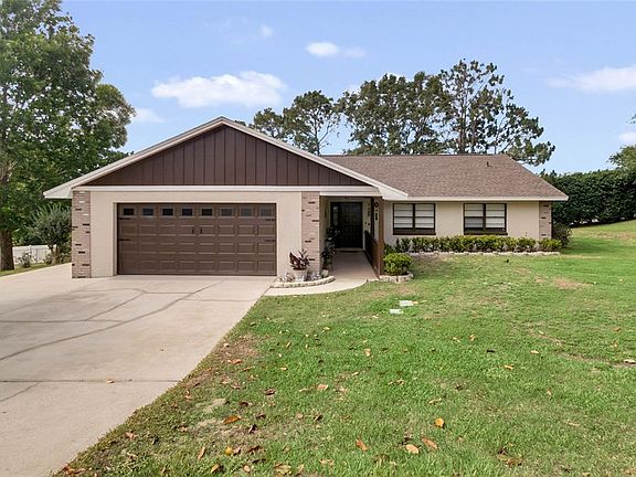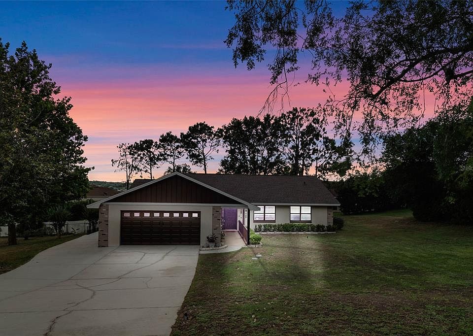 Live among Clermont's rolling hills with views of Lake Minnehaha. Located in Anderson Hills and on a large lot with a conservation lot next to this one! You will love the privacy and all the space here! This BLOCK home has 2 suites plus 1 bedroom and 2 full bathrooms. Large 2 car garage with exterior pad for more parking. MOVE-IN ready and recently updated! The Kitchen has received a new look with new stainless steel appliances. There is new flooring throughout the entire home, and no carpets here! The ROOF was just replaced, in Feb of 2021! The living and dining areas have two new sets of French doors leading to everyone's favorite room which is the tENCLOSED PORCH! The porch has high ceilings, lots of tall windows, doors and it also has its own air conditioner. It is the perfect place to lounge and to entertain, as it opens to the side patio with an outdoor fireplace & grills. Minutes away from Downtown Clermont and its new park, new boat ramp, beach area, restaurants and shops. Make this one your dream home today!