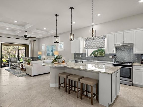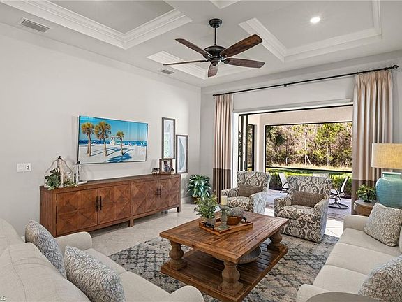 Gorgeous home with preserve view is being sold TURNKEY! This Martin Ray open concept floor plan offers 3-bedrooms, den/flex room, 2-baths, and a 2-car garage. The gourmet kitchen features white cabinetry and pull-out shelving, tile backsplash, reverse osmosis, rounded center island, upgraded stainless-steel appliances, butler’s pantry with a beverage fridge and an oversized walk-in pantry. The great room has a tray ceiling with crown molding and pocket sliding doors that open to an outdoor living area with a covered lanai. Spacious primary suite has tray ceiling, a large custom-built walk-in closet, dual vanities, walk-in shower, and a linen closet. Additional upgrades include built-in closets throughout, plantation shutters, custom lighting, all tile flooring (no carpet), overhead garage storage, whole house water softener, Murphy Bed in guest room, and a laundry room with utility sink and ample storage. Feel the comfort in knowing this home is not in a flood zone and is HURRICANE PROTECTED with impact glass front door and easy to open and close accordion hurricane shutters. Low HOA fees include cable, high-speed internet, lawn mowing and fertilizing, landscape trimming, and access to a wide range of amenities including tennis and pickleball courts, bocce ball and a fitness center! Other amenities include two resort-style pools and spa, social clubs, and more! The Plantation Golf & Country Club, which is situated within the gated community, features a Hurdzan-Fry championship 18-hole golf course in addition to a clubhouse and restaurant. Golf and social memberships are not required. Great location near I-75, shopping, restaurants, airport and beaches.