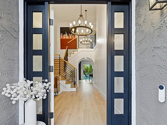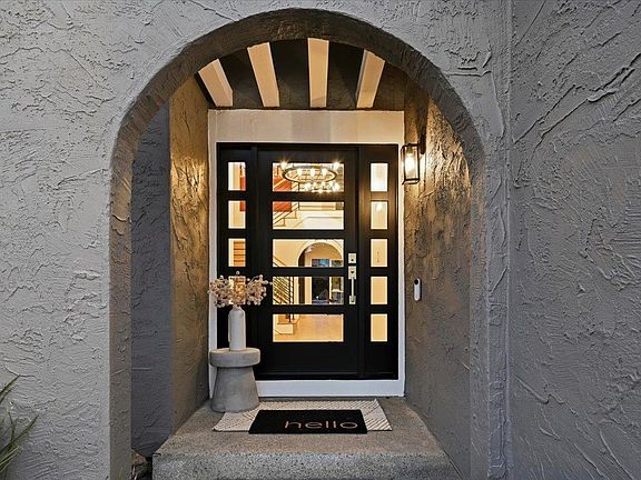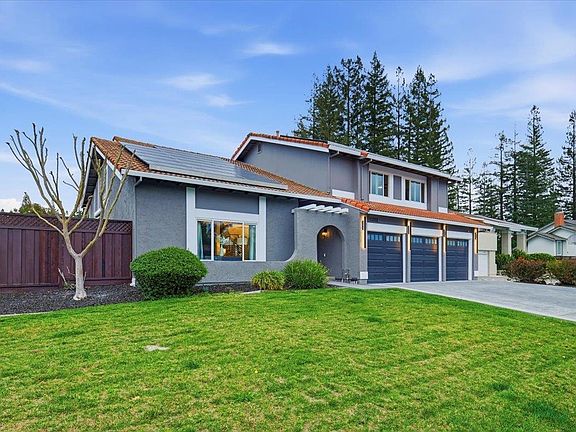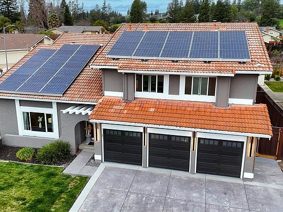 This stunning San Ramon home has been renovated by renowned local artist and designer Robin Alenda. Elevated modern finishes, soaring ceilings, warm wood-look flooring, dramatic lighting, and artful arches create an immediate sense of style and scale. Spacious living and dining areas flow seamlessly into the spectacular kitchen, family room and out to the expansive backyard perfect for effortless California living. The statement kitchen features black-and-white custom cabinetry with gold hardware, Carrera-look quartz counters, a waterfall island, ZLINE refrigerator and dishwasher, Forno 48” 8-burner double-oven gas range, industrial hood, extra-large farmhouse sink, and sleek modern lighting. Step outside to a resort-like backyard with a PebbleTec saltwater pool, waterfalls, built-in spa, custom tile, expansive paver patios, and mature desert-inspired landscaping. An oversized outdoor kitchen and bar seats 10 with tiled counters, double sink, ice box, two beverage refrigerators, and ample storage. Main level bedroom, full bath, and laundry. Upstairs offers three bedrooms including a luxurious primary suite, plus an oversized bonus room. Solar (leased), RV access, three-car garage, newly paved driveway, excellent San Ramon schools, close to City Center, and easy freeway access.