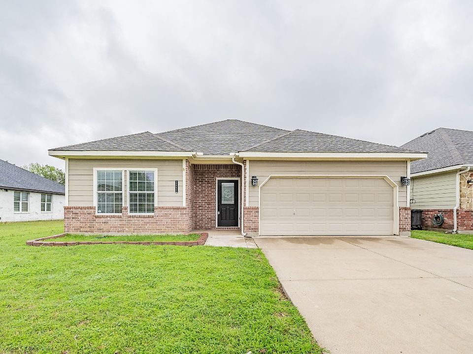This charming 3bed, 2bath home boasts an open concept layout, blending the kitchen, living, and dining area seamlessly. Stainless steel appliances grace the kitchen, alongside a generously sized pantry and breakfast bar. Wood and ceramic tile floors flow throughout, with plush carpeting in the bedrooms. The primary suite offers an ensuite bath with dual sinks, separate shower, and garden tub, plus a walk-in closet. Two split bedrooms share a full bath. Outside, discover a spacious backyard with a patio and storage shed, a blank canvas awaiting your personal touch to transform it into a spectacular outdoor oasis. Conveniently located off I35, offering easy access to major highways, shopping, and entertainment.