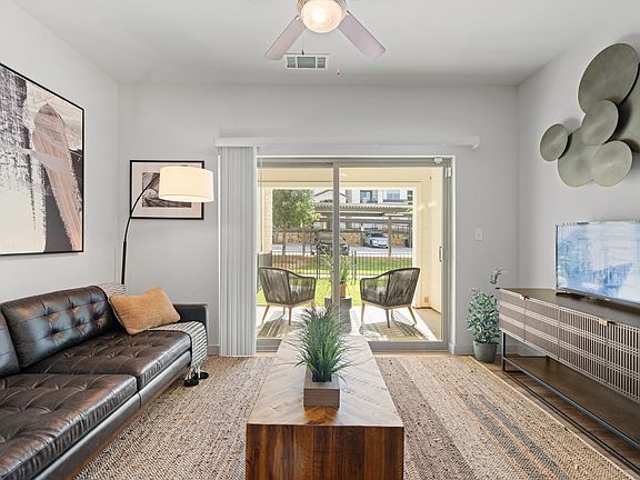 This 1,295 square foot, three-bed, two-bath apartment is the size of a single-family home with all the perks of an all-inclusive community, like 24/7 maintenance at no extra cost, included fiber wifi and cable, and our professional quality movie theater.