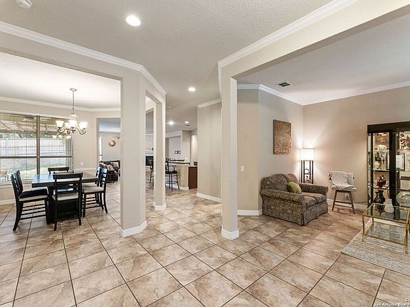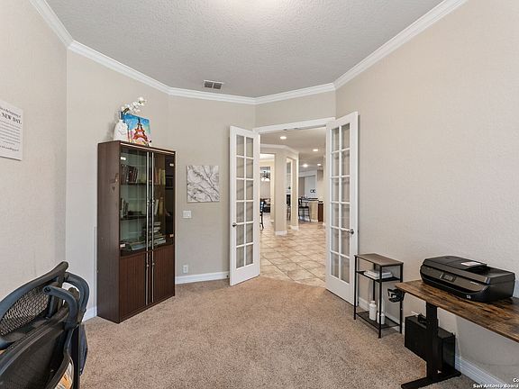 Explore this beautifully designed 4 bd/3 bath /2 half residence located in the gated community of Alamo Ranch! This spacious and thoughtfully upgraded home features a 3 car garage, with third bay transformed into a stylish home gym complete with custom paint and mirrors-perfect for fitness enthusiasts.(optional) Enjoy the ease of everyday living with two expansive living areas, two dining spaces, and an open-concept kitchen featuring a breakfast bar, walk-in pantry, and a new state-of-the-art Bosch dishwasher-a true chef's dream. The main floor offers ultimate convenience with all bedrooms and a private study/office located downstairs.Head upstairs to unwind in the large game/media room or utilize the versatile loft space to fit your lifestyle needs. There's ample space for kids to play in this friendly community, along with smart home features and enhanced security system for added peace of mind. See extra documents for Additional Upgrades & Features .