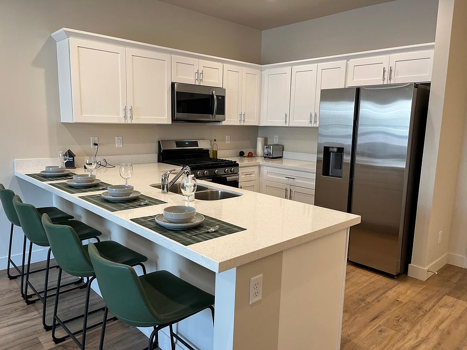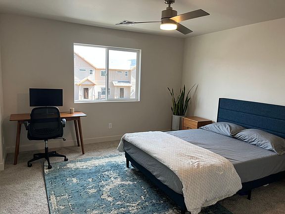 New construction (2022) FULLY FURNISHED w/ all utilities included! 3 bedroom townhouse located in Bellemont, about 12 miles outside of Flagstaff. Nearby major attractions in Sedona/Williams/Grand Canyon. Community is conveniently located right off of the I-40, close to hiking/biking trails (and FUTS) and golf courses. 15 mins to NAU and Flagstaff Medical Center. Breathtaking views of the National Forest and San Francisco Peaks, a park with a playground, pickleball courts, and a dog park. Home has open concept floor plan featuring upgraded white cabinets with quartz countertops and all stainless steel appliances in the kitchen, a 55 inch smart TV with a fireplace in the living room, and a charming patio with furniture to enjoy park views (premium lot). Upstairs has all bedrooms and laundry room with washer and dryer included. 2 car garage with EV car charger. No smoking. 3-6 month flexible lease options.