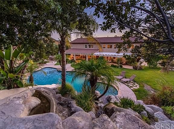 Presenting the crown jewel of prestigious gated Bridlewood Estates in Granada Highlands * Grand entry with chandelier and sweeping staircase * 6BR (in main house) + 6BA in over 5,300 total square feet of sumptuous, private splendor on a 2.06 acre lot at the end of the premier quiet cul de sac * Built in 2003 but upgraded with rich hardwood floors, updated front door, added lighting * Island kitchen with beamed ceilings, granite counters and stainless steel appliances including built-in refrigerator and a breakfast area * Beamed ceilings and new surround sound in family room with fireplace * Big bonus room plus a library with built-in cabinets and shelves upstairs - great home office or study area * Giant main bedroom suite with enormous, walk-in closet with built-in cabinets and drawers and looks out on bucolic backyard * Main suite bathroom has dual sinks, vanity area, soaking tub and separate shower * You will be in love before you go out back, thenWOW! Designer pool and spa built into hill with slide and waterfalls * Casita with full bath and kitchenette - perfect for ADU, home office, or gym * Unique, outdoor veranda with gas burning fireplace * Barbecue center with U-shaped sitting bar for over 12 people, huge covered patio, lots of grass play areas and lighted half basketball court * "Zen" rock garden * Views of the valley from your personal hillside sanctuary * Extra large 3 car garage with storage plus extra parking * Great schools including GH Charter HS**