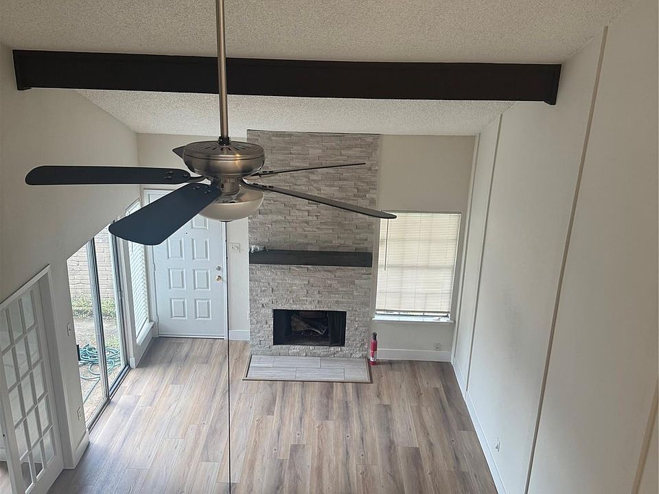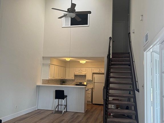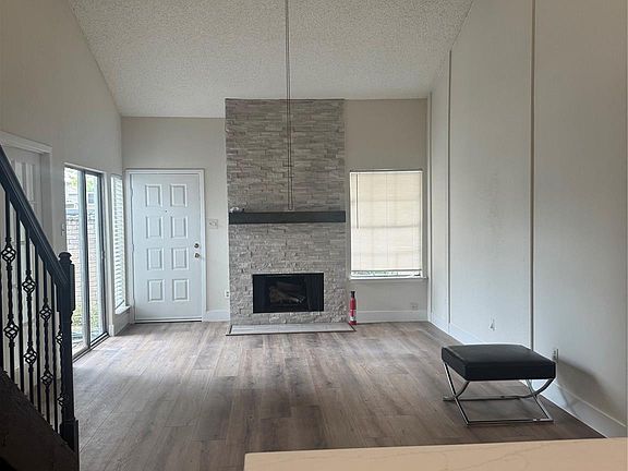 Beautifully updated 2-3 bedroom, 2+ bath home in wonderful gated neighborhood.Plumbing updated to Pex (replaced the galvanized steel pipes!), AC replaced 3/25, gorgeous quartz countertops, luxury vinyl plank flooring, fresh paint, carpet, vanities, hardware, tall baseboards, and more! Kitchen w/ quartz, new stainless steel range, deep sink, & large breakfast bar open to living/dining space that stuns with tall ceilings and floor to ceiling stone fireplace. Also downstairs: laundry area, updated guest bathroom, and one large bedroom with huge separate vanity, walk in closet, french doors and private patio access. Upstairs is another large Bedroom w/ beautiful bath, THREE closets, & a fully enclosed bonus room that can be used as a bedroom, study, game, media or craft room, etc. Either of the bedrooms would make a terrific primary bedroom or makes a fantastic roommate plan.The property is located in a quiet interior location & has assigned covered parking! Move in ready! owner/agent