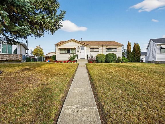 RARE MASSIVE LOT! Welcome to Kensington, a family-friendly community in north Edmonton. This charming bungalow sits on a huge pie-shaped lot (over 1,040 m²), a rare find in the city! The home offers four bedrooms (3 above grade), one full bath, and a finished basement with a large recreation room and additional bedroom. The bright main floor features a welcoming living room and functional kitchen overlooking the expansive backyard. Outdoors is a treat for any gardener, featuring a large, beautiful garden, fruit trees, and a double detached garage with ample space for vehicles, tools, or hobbies. Located just a short walk from Kensington School, close to shopping, parks, and public transit, this home is perfect for first-time buyers, investors, or anyone looking for a home with room to grow and a large back yard. Solid, well-maintained, and full of potential. This property is a must-see!