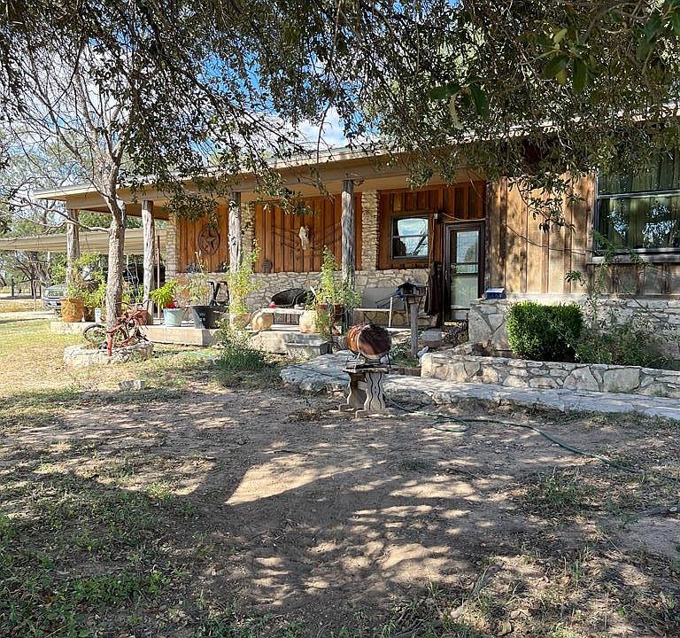 Beautiful river front property with big pecan trees next to river and around the house. Three bedroom two bath on 5 acres with other building for office or studio. Large carports, fenced garden area and water well. Come look at this home. Call Lisa for appointment.