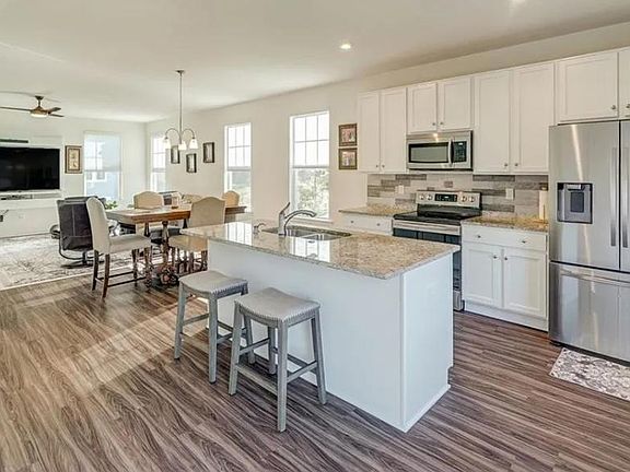 Welcome to the heart of Midlothian! This END UNIT townhome is located in a prime spot, just minutes from Wegmans, Burger Bach, and many other shops and restaurants. The 1907 sq ft, four-bedroom townhome is located on a cul-de-sac, offering plenty of parking plus a gazebo and picnic benches for outside enjoyment. The first floor features a large bedroom with a closet, full bath, and exterior access to an oversized concrete patio, perfect for summer evenings. The second level opens up to an open concept living area with a custom kitchen, upgraded with granite counters, custom backsplash, stainless steel appliances, and large pantry. Enjoy stunning views from the large deck, perfect for grilling dinner. The family room has an abundance of windows for natural light and a ceiling fan. Upgraded vinyl plank flooring runs throughout this level. On the third floor, the primary bedroom has large closets and an en-suite bathroom with double vanities and walk-in shower. 2 additional bedrooms, a third full bathroom, and the laundry room complete this floor. The washer, dryer, and kitchen refrigerator are included for your convenience. Don't miss out on this pristine property to rent! This is a great offer for a 4 bedroom, 3.5 bathroom, almost new townhouse with a large deck and patio perfect for a cozy fire or grill! Renter covers utilities; electric, water, internet. Landlord covers HOA which includes lawn, snow, trash, recycling, and exterior cleaning. Pets are a potential - please check in with how that works! Parking is available on the driveway (can fit 2) and 1 in the garage as well as street parking.