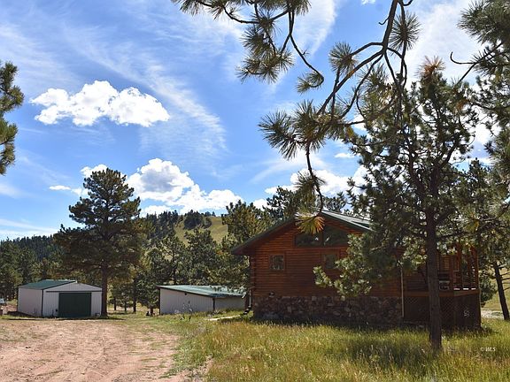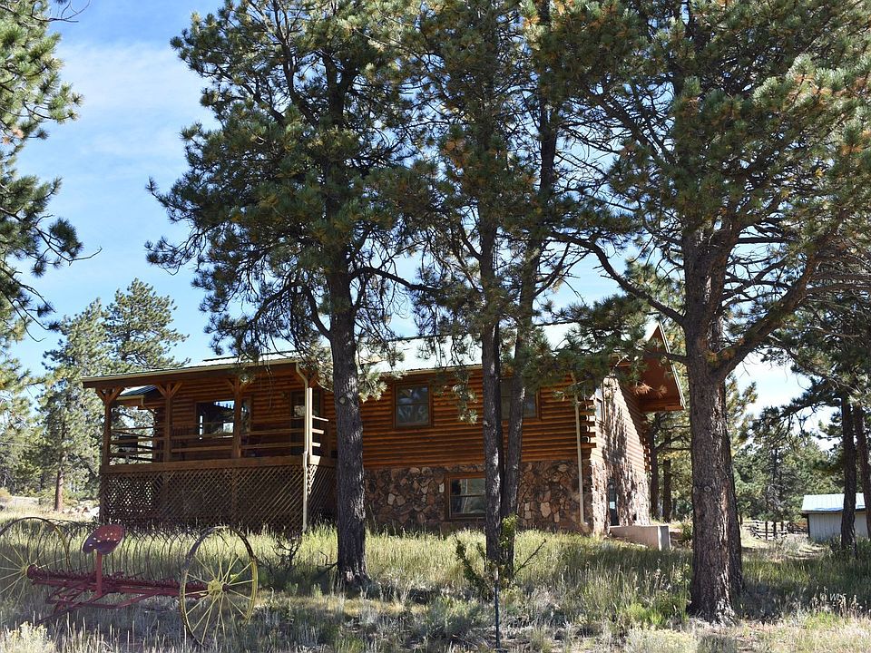 Hunters and Homesteaders Paradise Adjoining State Lands. Charming log home on 40 acres with stunning Sangre de Cristo Mountain views! This peaceful mountain homestead offers covered decks, end-of-the-road privacy, and easy access just off the highway only 12 miles from Westcliffe town. The home features 1,232 sq ft of finished living space with 2 bedrooms and an office, 2 bathrooms, an open kitchen/living/dining area, hardwood floors, large windows, and a cozy wood-burning stove. The 1,232 sq ft unfinished walk-out basement is ready for your vision. The land is a true haven for you and your animals, with a seasonal pond, grassy pastures, and plentiful tree cover for natural shade. A 24x48 pole barn, 40x60 Morton Building barn, and fenced corrals provide ample space for livestock, horses, or equipment. Enjoy fresh eggs daily from your own chicken coop and fenced run. The property BORDERS 10,000 ACRES OF STATE LANDS for added space and privacy, and a current grazing lease on the neighboring 40 acres brings your total usable land to 80 acres. No HOA. This is a rare opportunity to enjoy the homestead lifestyle in a breathtaking mountain setting.
