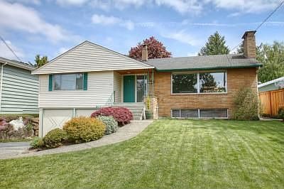 Enjoy the sunsets and Olympic Mt views from this desirable Broadview location. Solid light and bright mid century classic home features large living areas, kitchen w/eating space, dining room and oversized double pane windows. Good sized master bedroom w/extra deep double closets & private bath. Lower level includes family room with fireplace, 3rd bedroom, 3/4 bath and a huge laundry/storage area. Covered patio overlooks beautifully landscaped level yard, garden shed/playhouse w alley access.