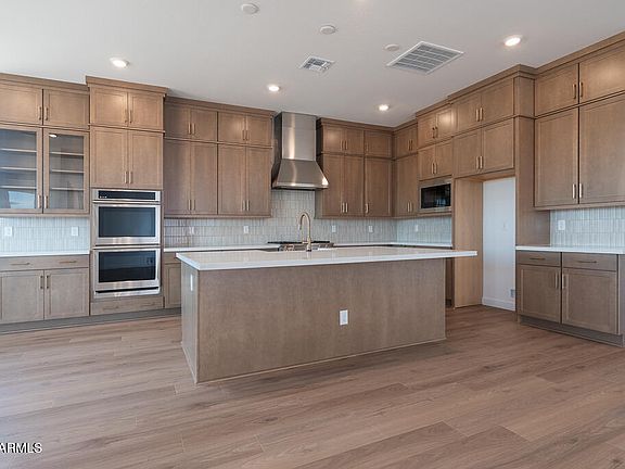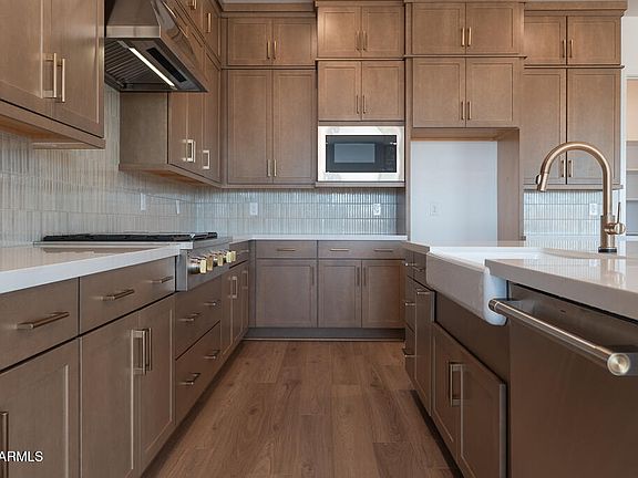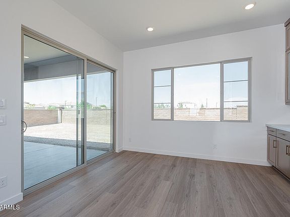 Extraordinary, single-story home featuring 4 bedrooms, 3.5 bathrooms, an office, game room, an attached 3 bay tandem garage, and designer upgrades throughout! The welcoming desert-style exterior includes north/south exposure, block fencing in the backyard for privacy, a covered back patio, a 8' double gate on the side of the home, an Iron entry front door, and pavers at the driveway, walkway, and front porch. The kitchen boasts GE Monogram gas appliances and Bryant Maple Buckskin cabinetry with stacked upper cabinets. Other upgrades include Champagne bronze plumbing and lighting fixtures, Quartz countertops in the kitchen, primary bath, and powder bath, wood look flooring in all areas but the bedrooms, and a frameless walk-in shower at the primary bath with custom tile work.