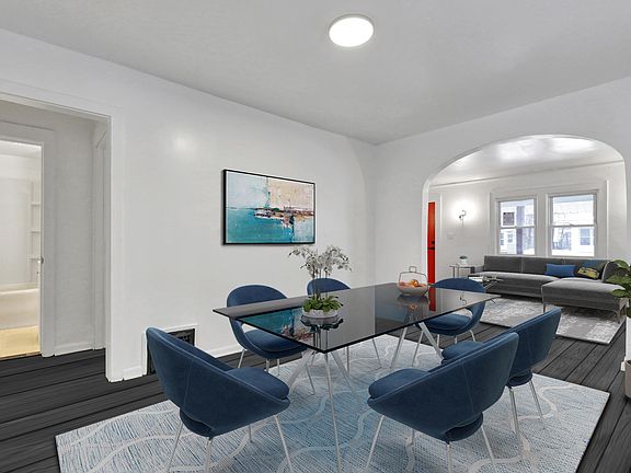 Adjacent to the living room is a cozy dining room, perfect for enjoying intimate meals or hosting gatherings with friends and family. The seamless flow from the living room to the dining area creates an open-concept layout, ideal for modern living. The kitchen, though not mentioned, likely complements this space, offering functionality and style with its modern appliances and ample storage options.