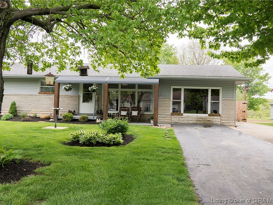 Esplano Drive is a classic neighborhood of its own, and you can place your household within the large platted lots near to Clifty Falls State Park. You can feel the park-like setting with this home, and its large backyard of beauty. There are maple and walnut trees, peach and apple trees, raised beds for planting, and blueberry bushes too. There is still an abundance of flat and useful backyard. There is privacy fencing along the entire expanse, but picket fencing in the back to open the yard to a meadow-like view, and this backside is where the fire pit area exists. Two large sheds sit side-by-side, and with electric to them for full functionality of a workshop. There is an above ground pool that is only 3 years old, and a highly desirable screened in porch taking you back to it all. The home offers 4 bedrooms and 2 1/2 baths!! There are windows throughout the home that give great lighting and the breakfast bar is at a large window for viewing the rear yard. Original hardwood floors are at the main living room and into three of the bedrooms. Replacement flooring is throughout the other half of the home. The laundry room is a shared space with the half bath. Get ready, get set, and move on into this home that is ready for you to make your own!